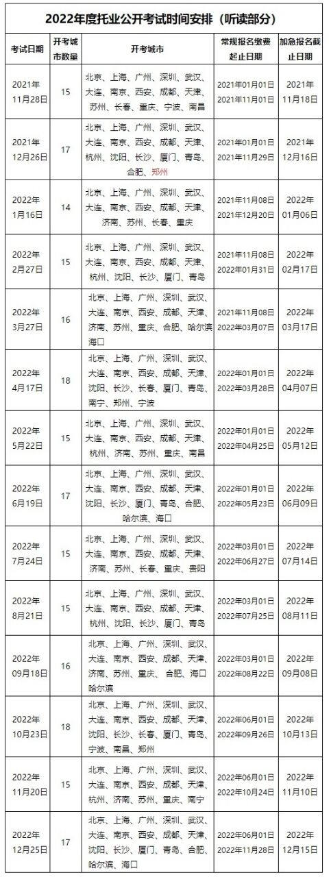 2022下半年托业考试(TOEIC听读部分)考试时间如下: