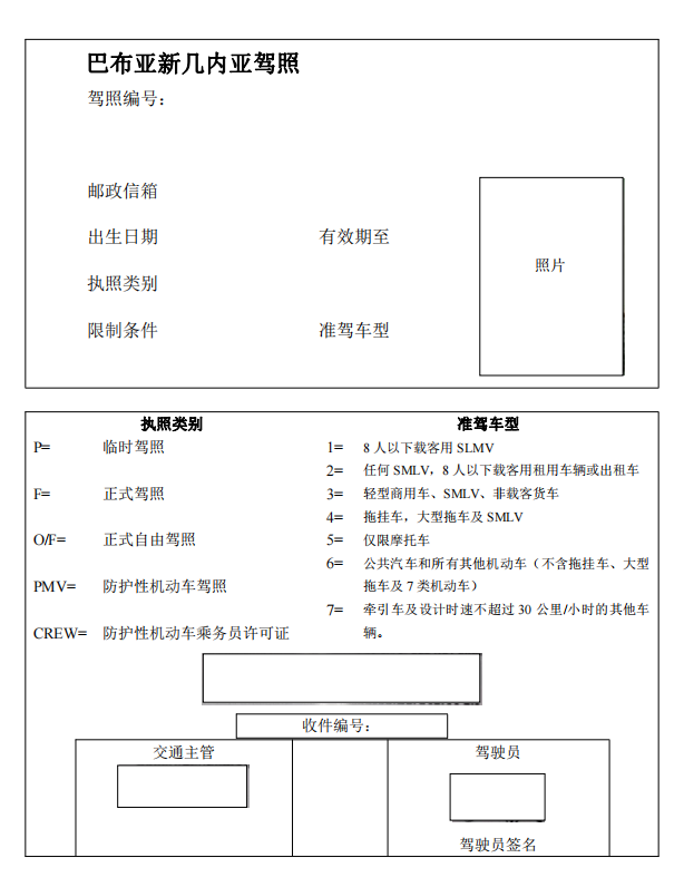 巴布亚-新几内亚驾照翻译案例(仅供参考)