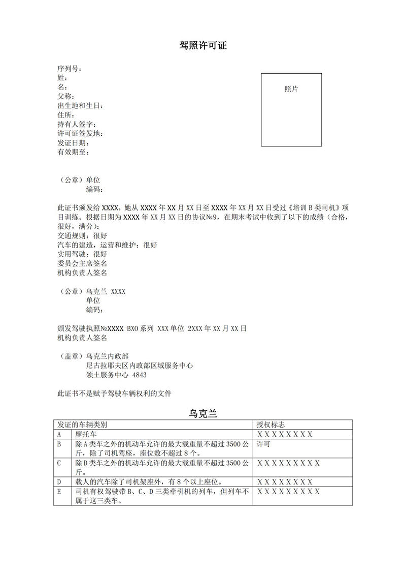 【青岛翻译公司】青岛译澳翻译——乌克兰驾照翻译实例