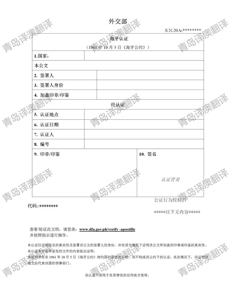【青岛翻译公司】青岛译澳翻译——菲律宾海牙公证外译中