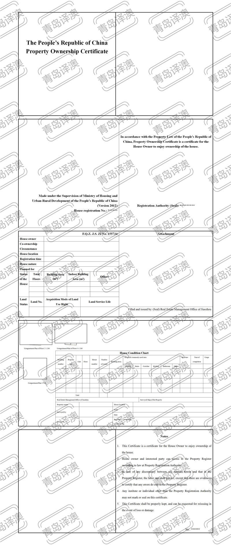 【青岛翻译公司】青岛译澳翻译——房产证商品房翻译 -中译英
