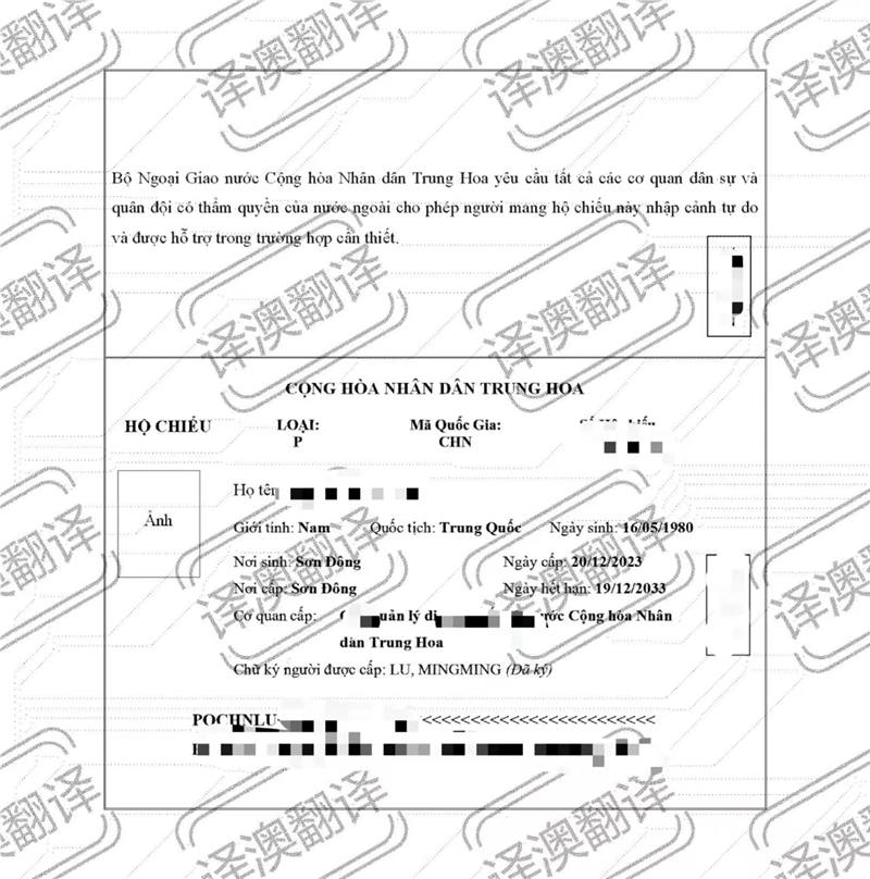 【青岛翻译公司】青岛译澳翻译——护照 翻译案例 中译越