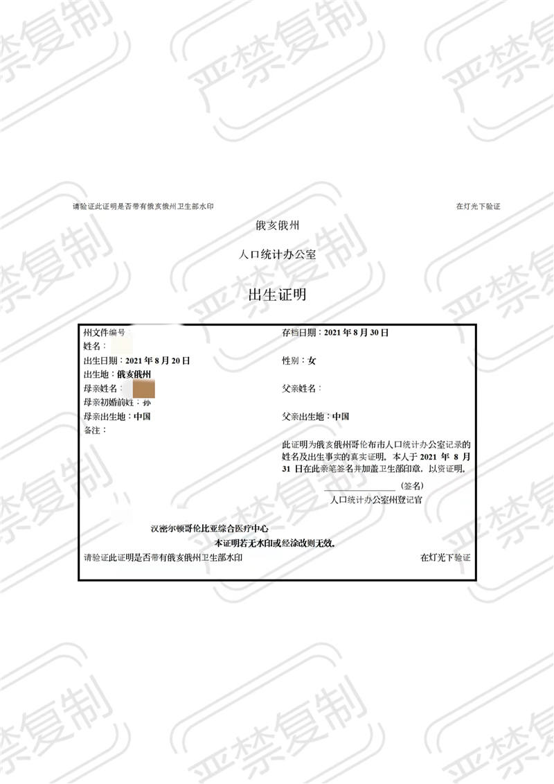 【青岛翻译公司】青岛译澳翻译——美国俄亥俄州出生证明 翻译案例 英译中