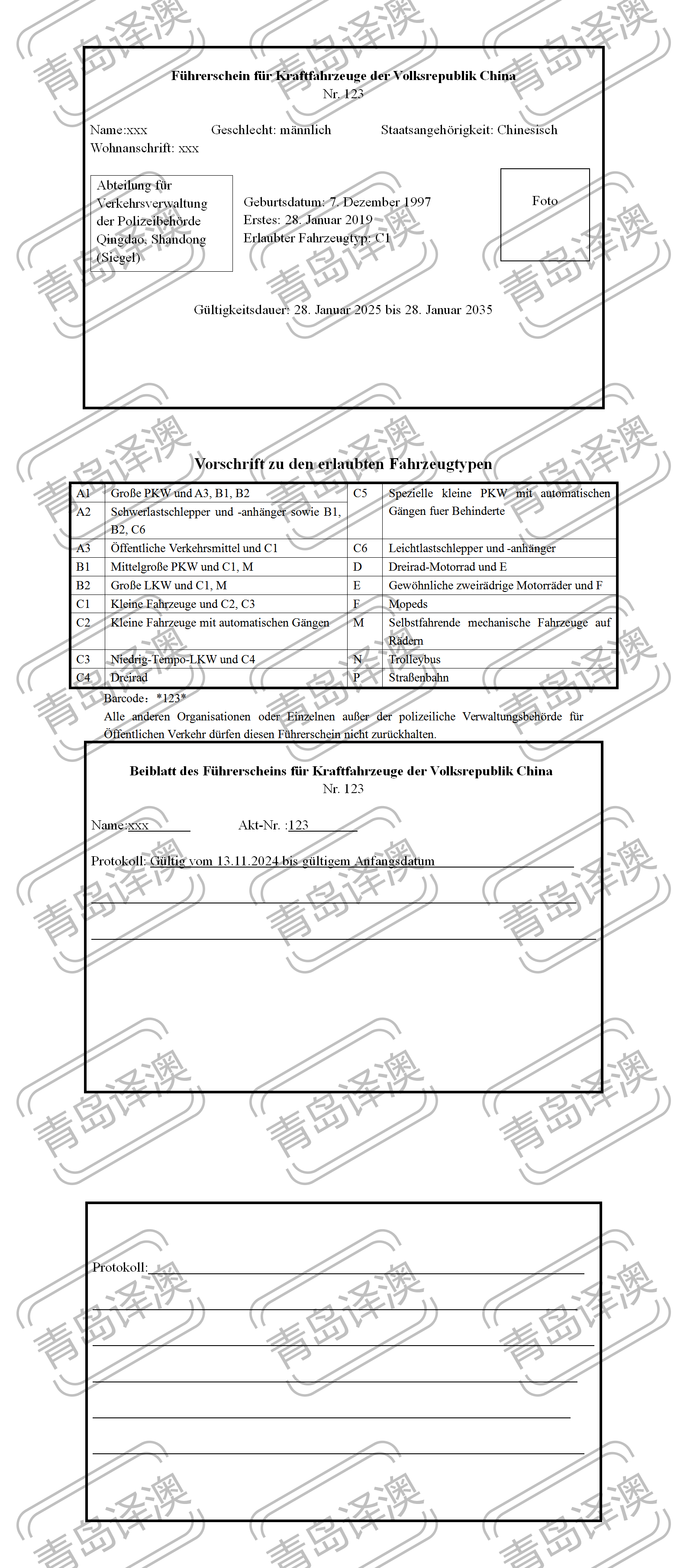 【青岛翻译公司】青岛译澳翻译——驾照翻译案例 中译德
