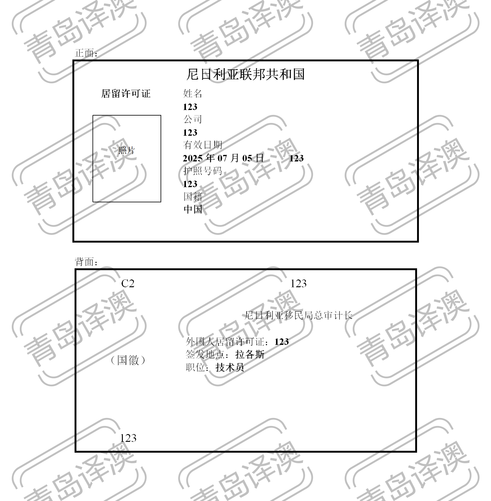 【青岛翻译公司】青岛译澳翻译——尼日利亚拘留许可证翻译案例 英译中