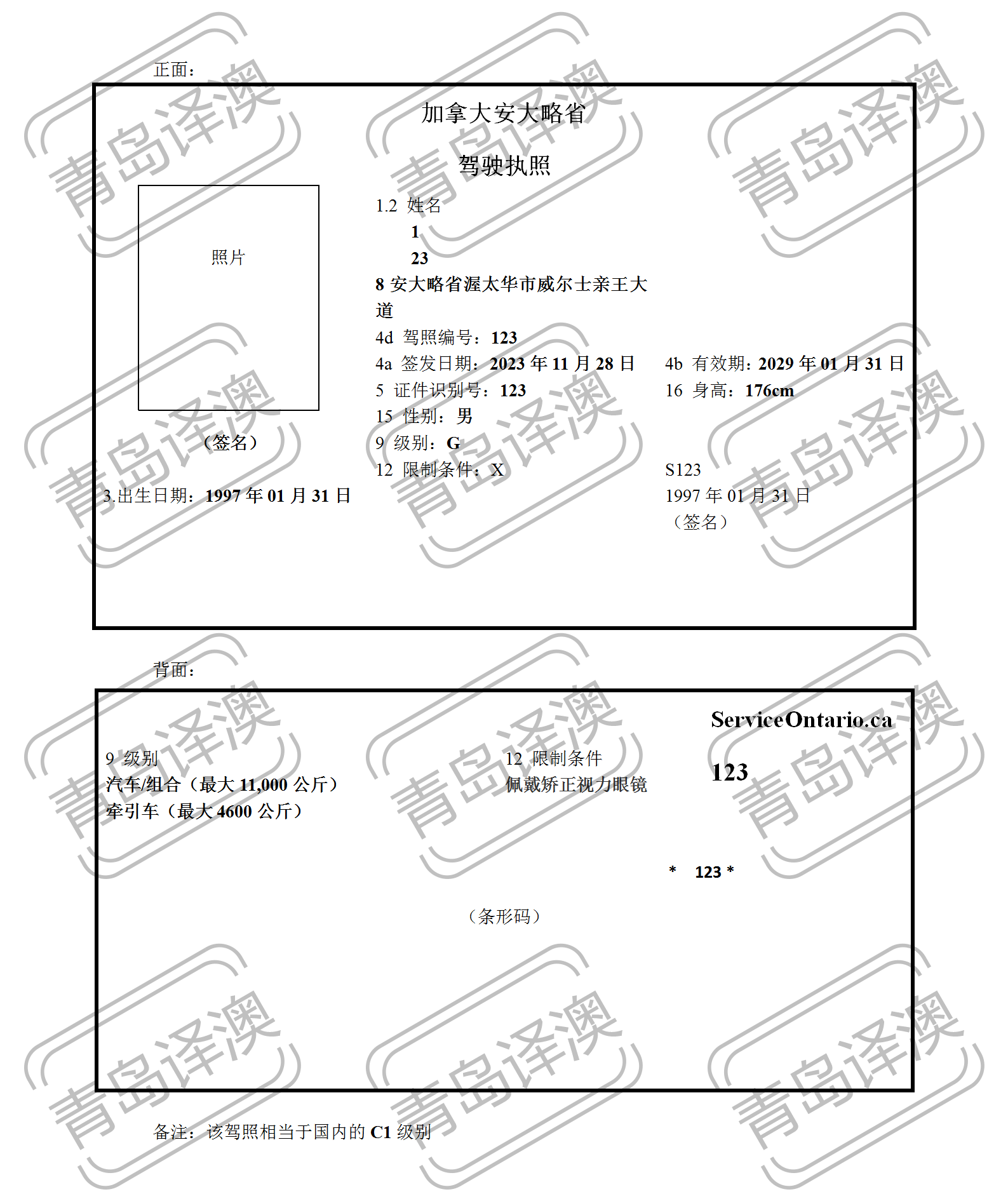 【青岛翻译公司】青岛译澳翻译——加拿大安大略省驾照翻译案例 英译中